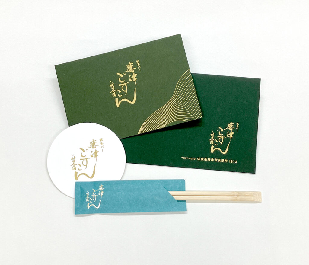 唐津ごずこんの店舗オープンに合わせ、記念イベントの招待状から店内備品までをトータルでデザインいたしました。